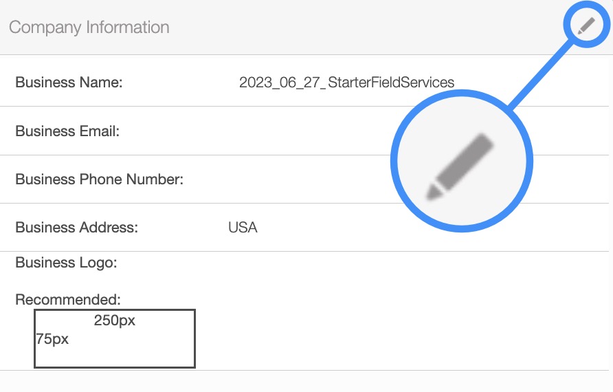 You can update the data within the "Company Information" column by clicking on the Pencil icon: