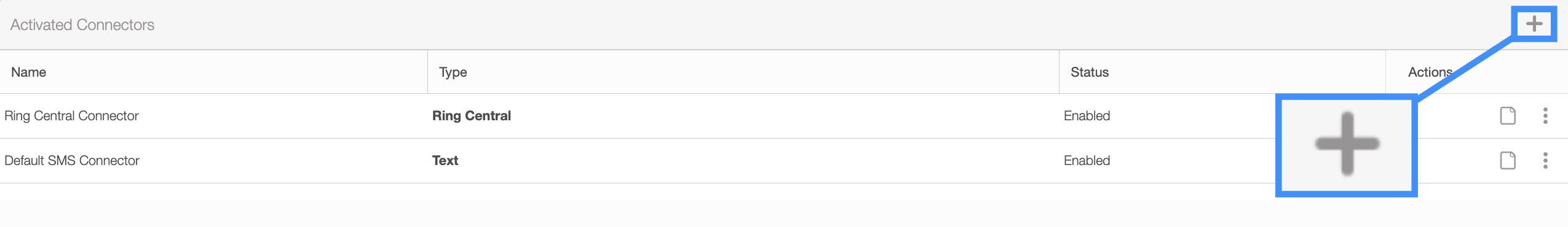 The "Activated Connectors" column will display all the connectors that are active in your MobiWork account. From this column you can add more connectors, disable the connectors that are currently active, or view the connector information: