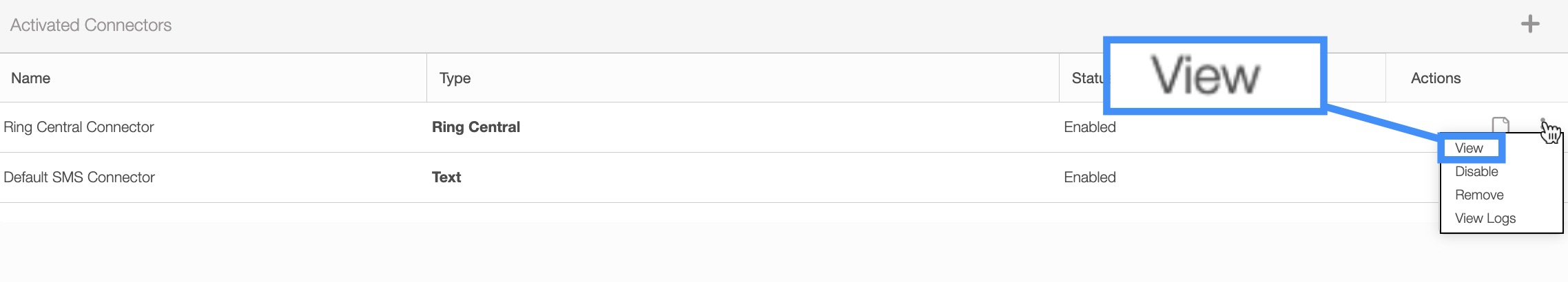 To view additional details regarding the connector, you can click on the View icon or select the "View" option from the Individual Actions drop-down: