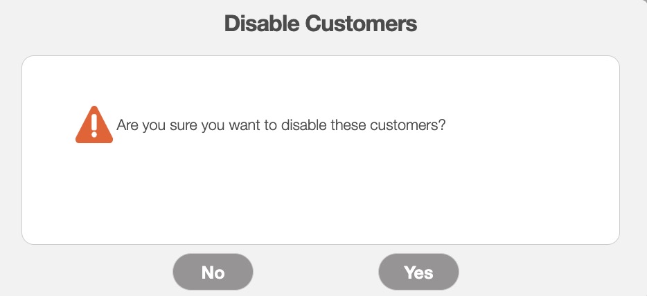 - Click the Yes button to confirm that you would like to disable the selected customers.
