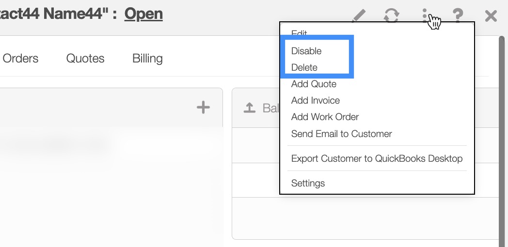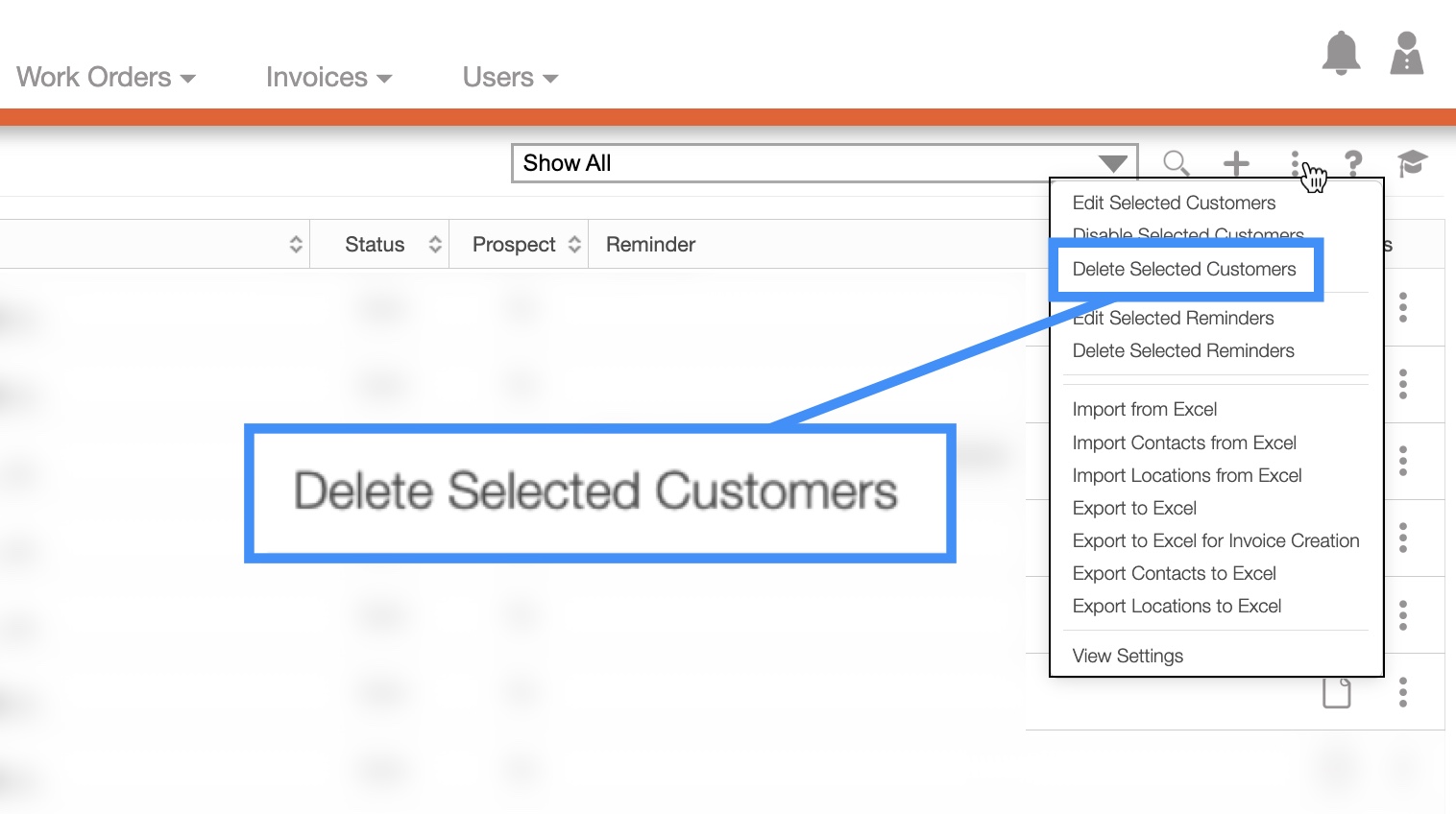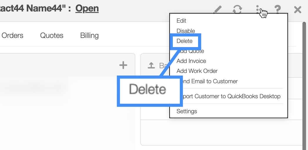 Please note that if there are any work orders connected to a customer you will be unable to delete the customer.
