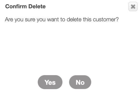 If you are sure you would like to delete the selected customer, click the Yes button. Please note that this action is permanent and any corresponding work orders and scheduled activities related to the customer will also be removed.