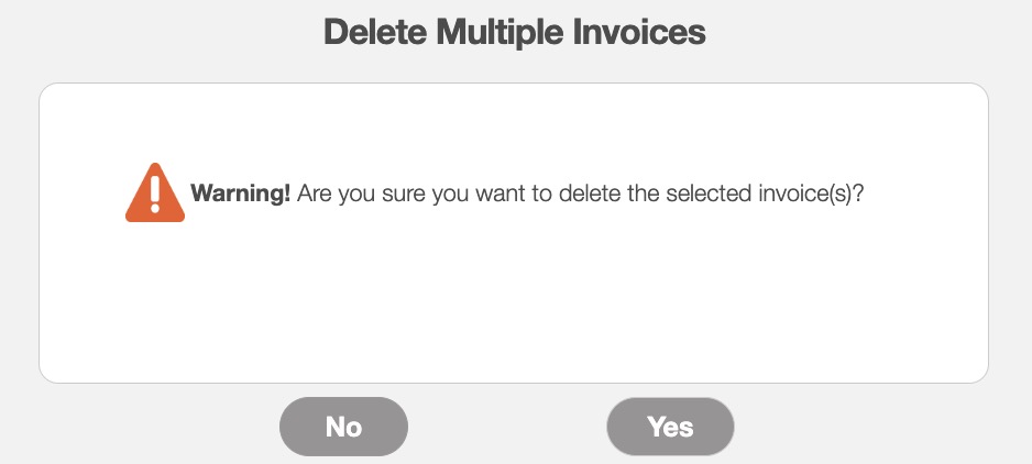 - Click the Yes button to confirm deletion. Once confirmed, the invoices will automatically be deleted from MobiWork.