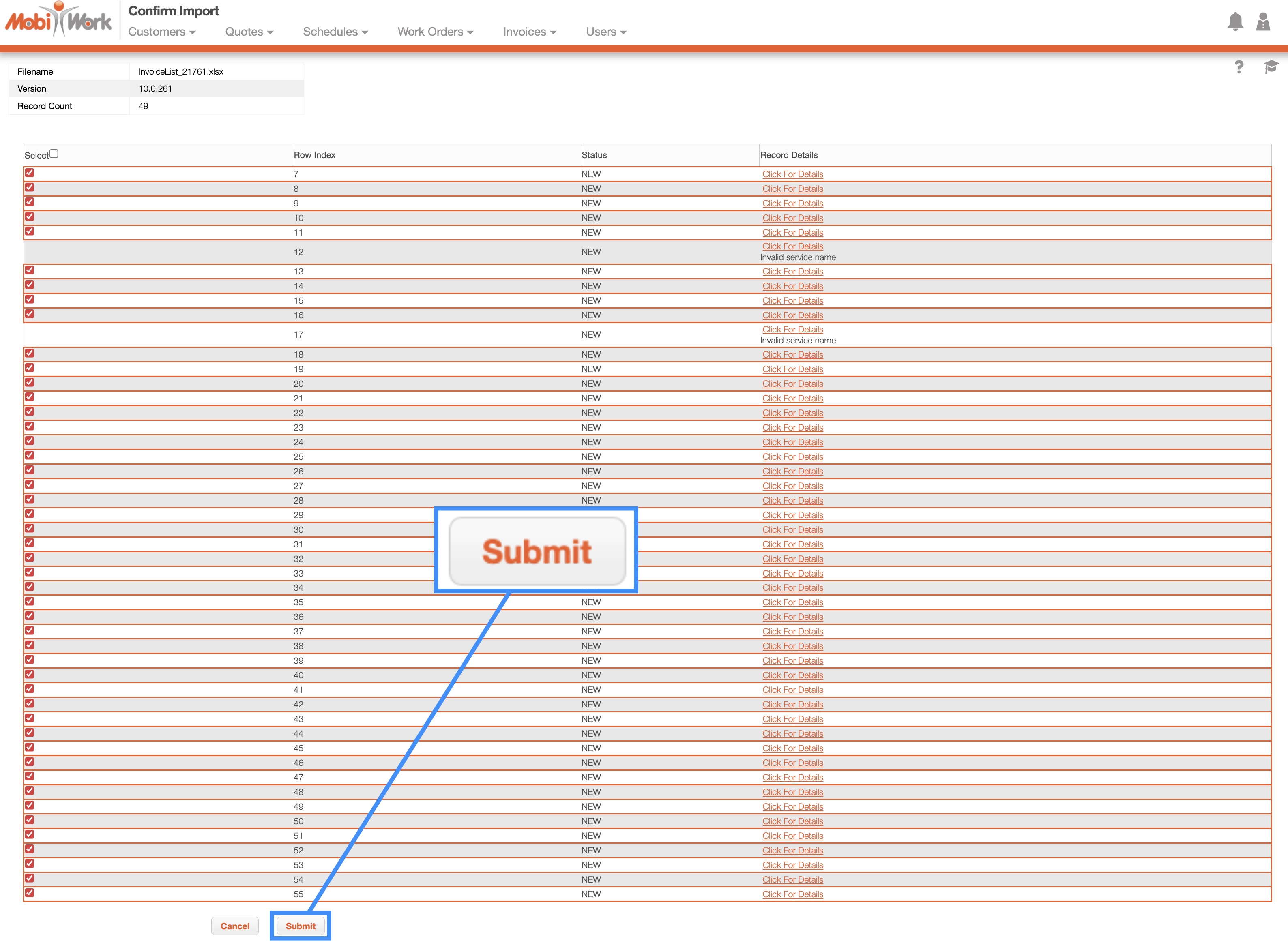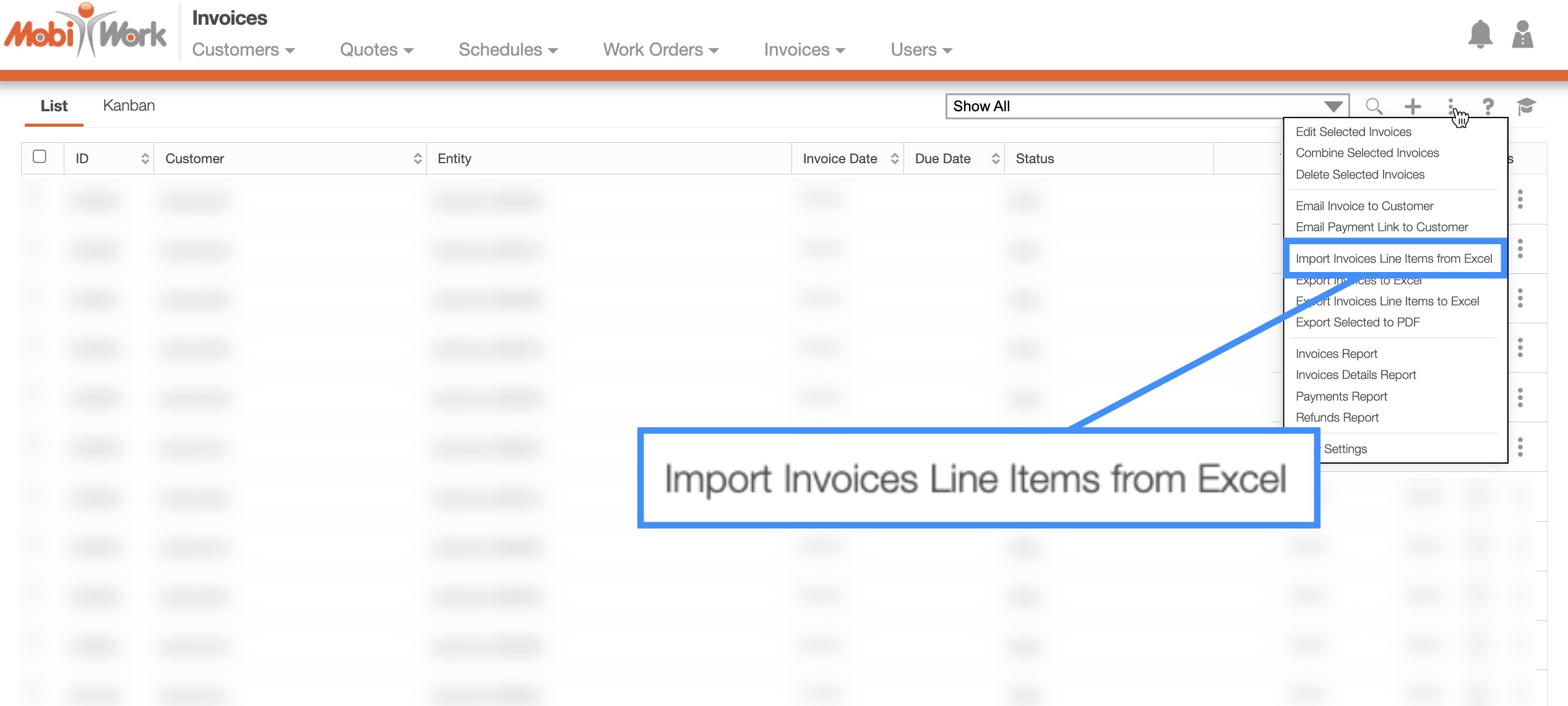 You can import new invoices into MobiWork; this section will explain how to import your invoices from Excel or QuickBooks.