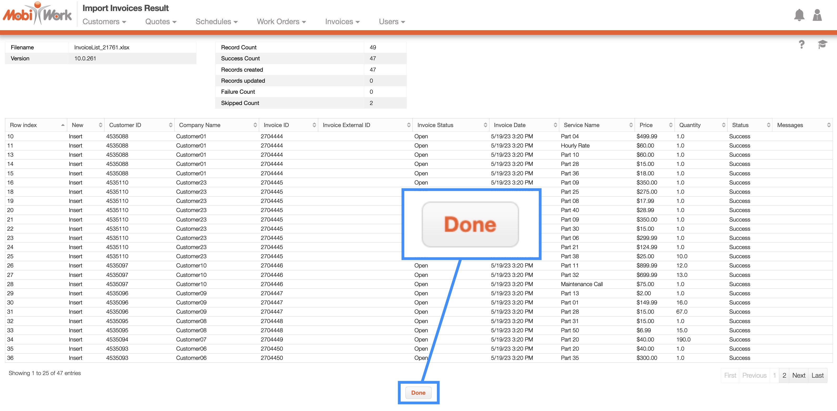 Once you are redirected to the Import Invoices Results page, click the Done button:
