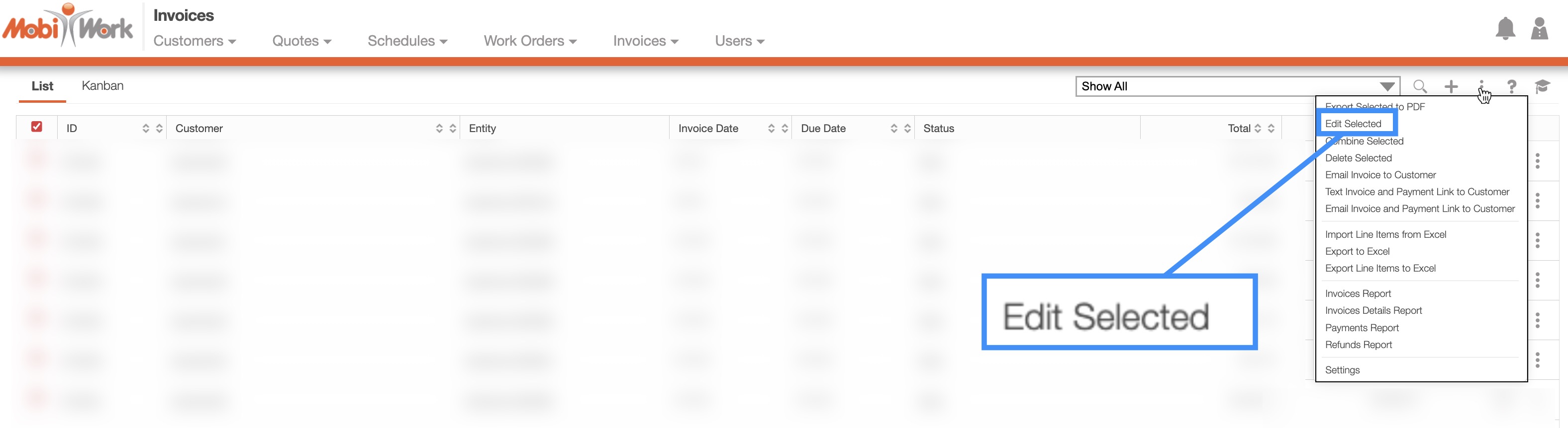 Invoices will only sync from MobiWork to QuickBooks Desktop if they are marked in MobiWork. To mark a invoice to be imported into QuickBooks Desktop, you will need to update the “Integration Status” in MobiWork to “Ready For Integration” with the "Edited Selected" option from the More Actions drop-down: