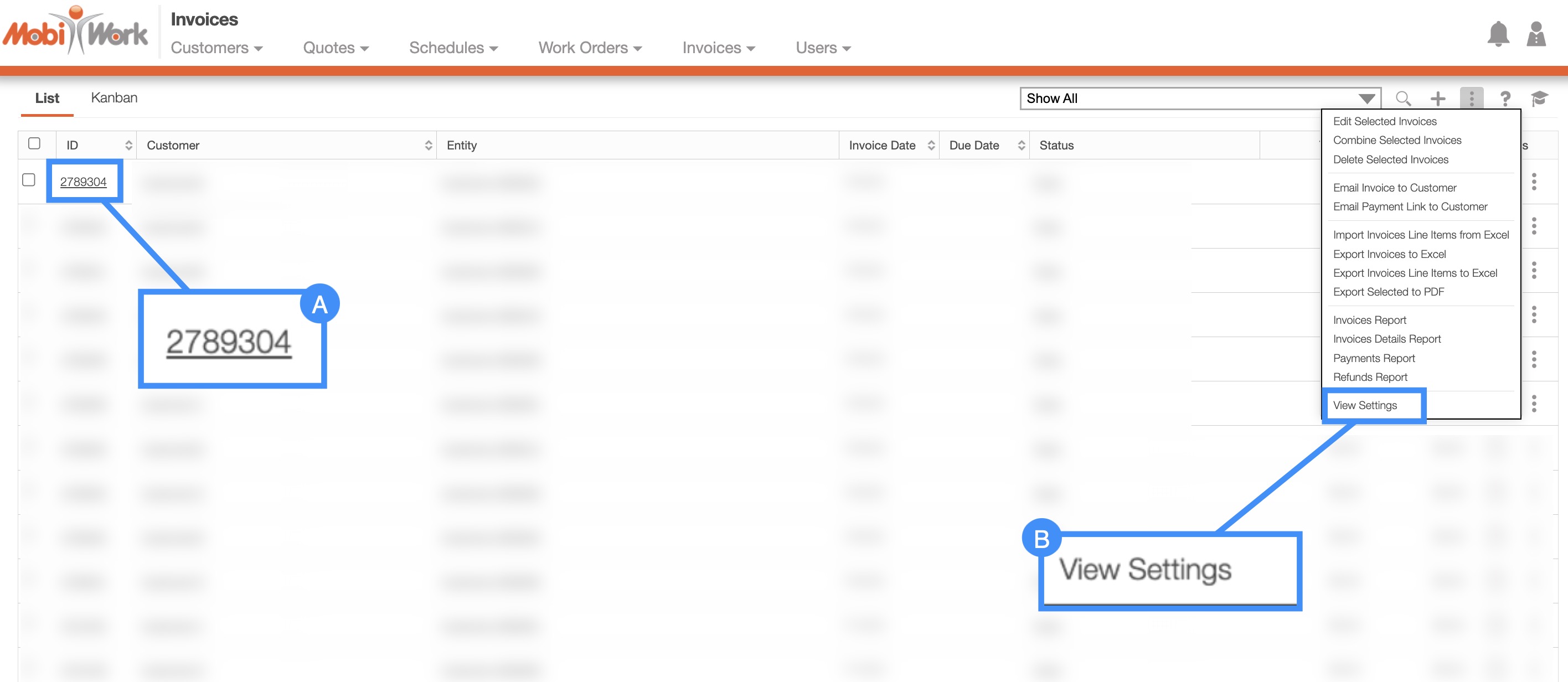 - By clicking on the ID number of an invoice and accessing the View Invoice pop-up window: