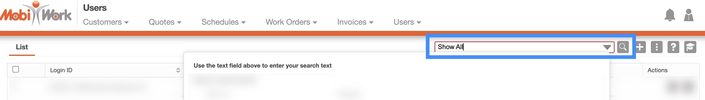 If you would like to view all your users, click on the "Show All" option from the drop-down menu: