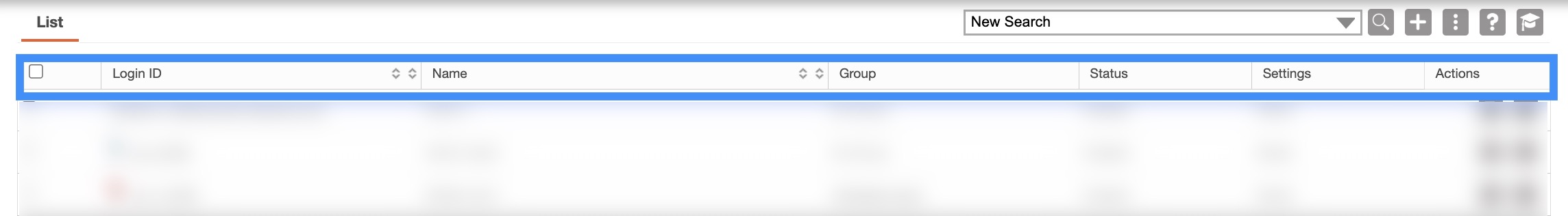 | "Actions" | The View icon and the Individual Actions button can be found here; these buttons will allow you to perform actions on a user. |