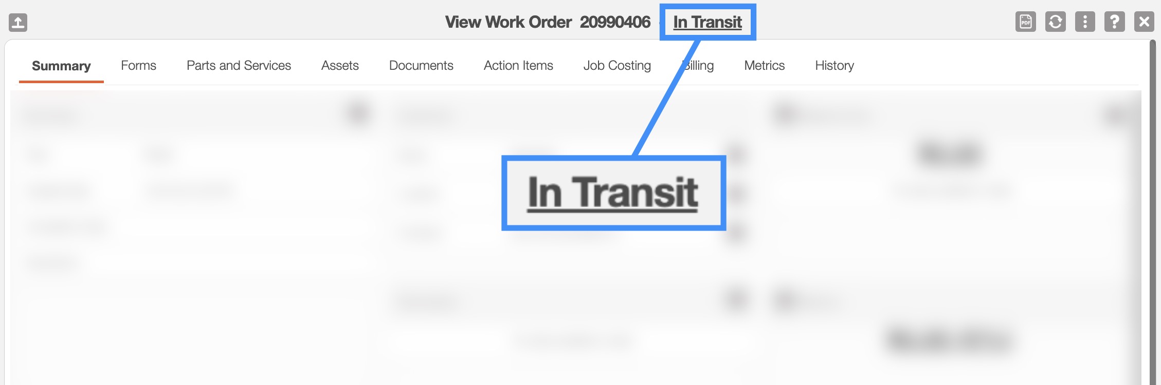 To ensure that the text message is sent while the company representative is en route, please confirm that the work order status is set to "In Transit."