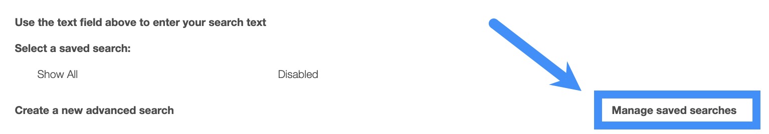 Any new searches or existing searches can be managed or edited in the Manage Saved Searches pop-up window: