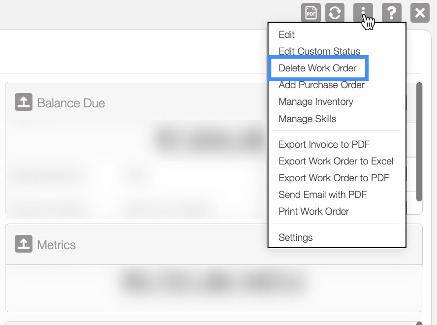 Important: Once you delete a work order it will be permanently removed from the system.