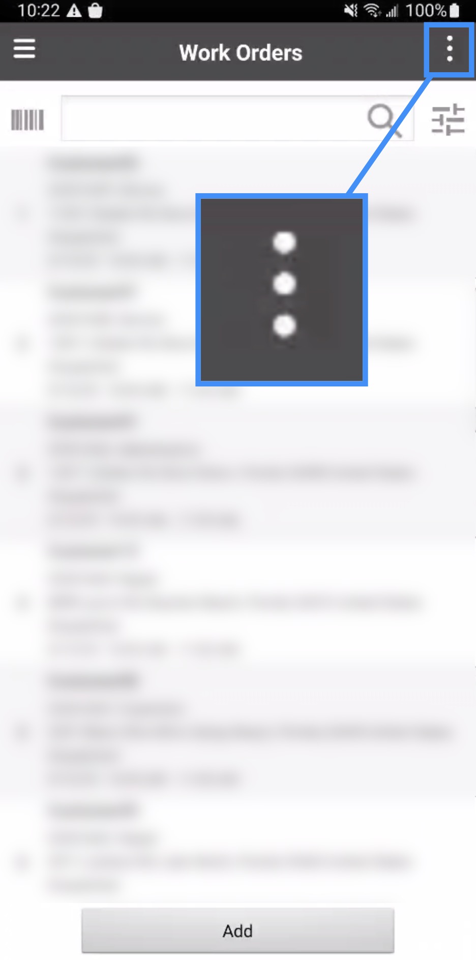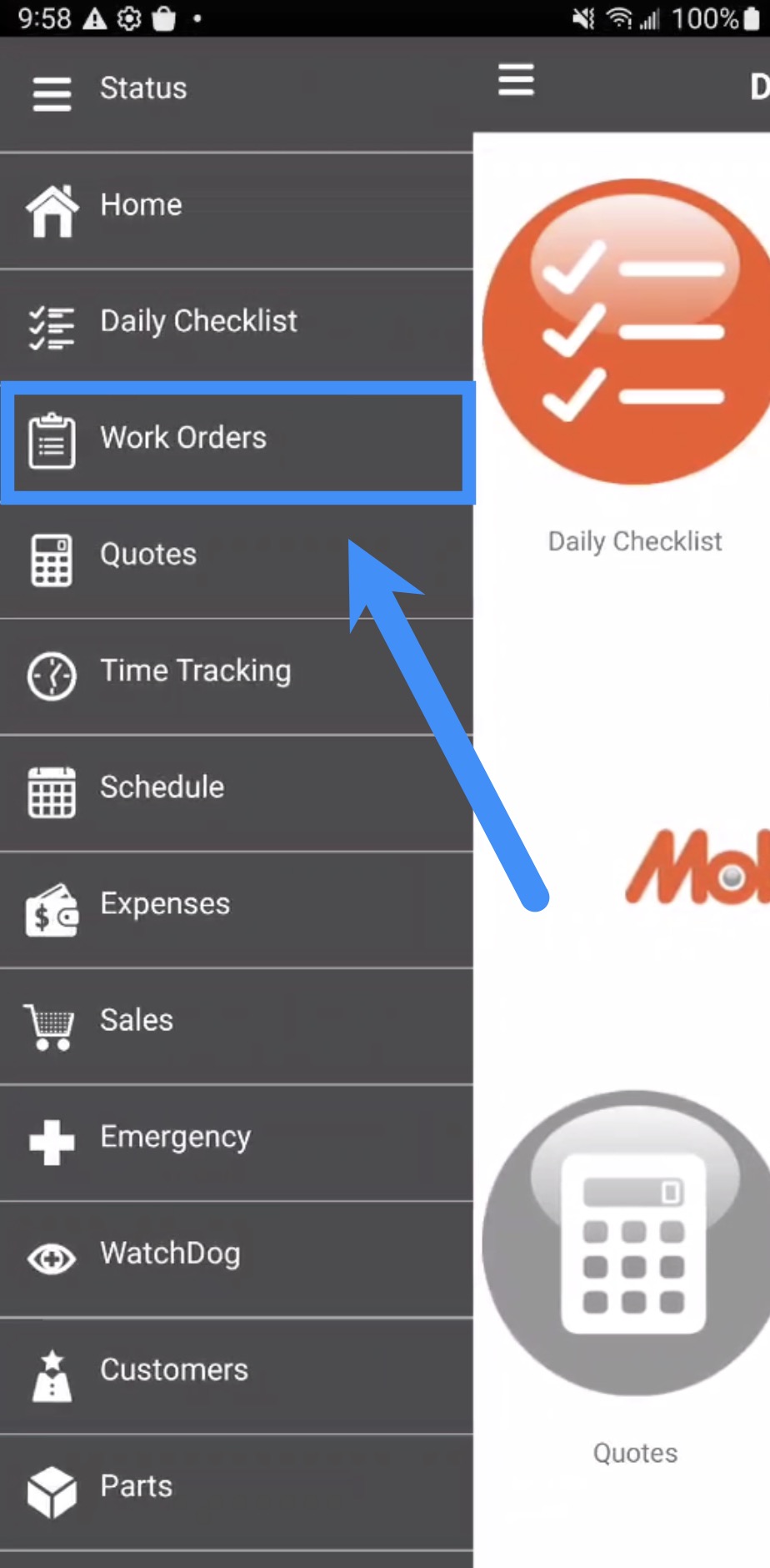 You can also access the Work Orders feature through the Menu Panel. You can access the Menu Panel, by clicking the button in the top left corner: