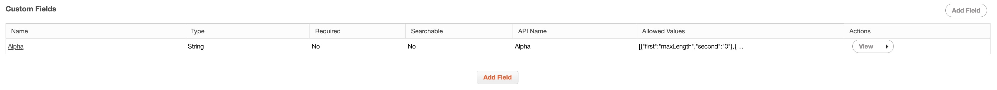 | "API Name" | The API name of the custom field. It is used in the Reporting section and configuring PDFs. It does not change after it is created. |