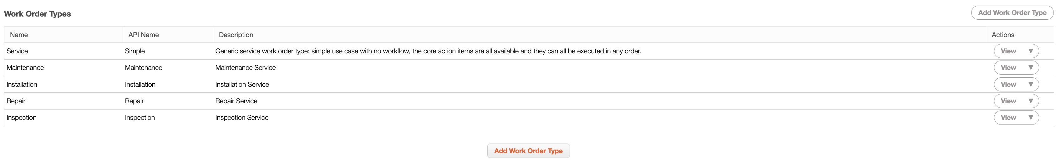 | "API Name" | The API name of the work order type. (The name does not change after it is created). |