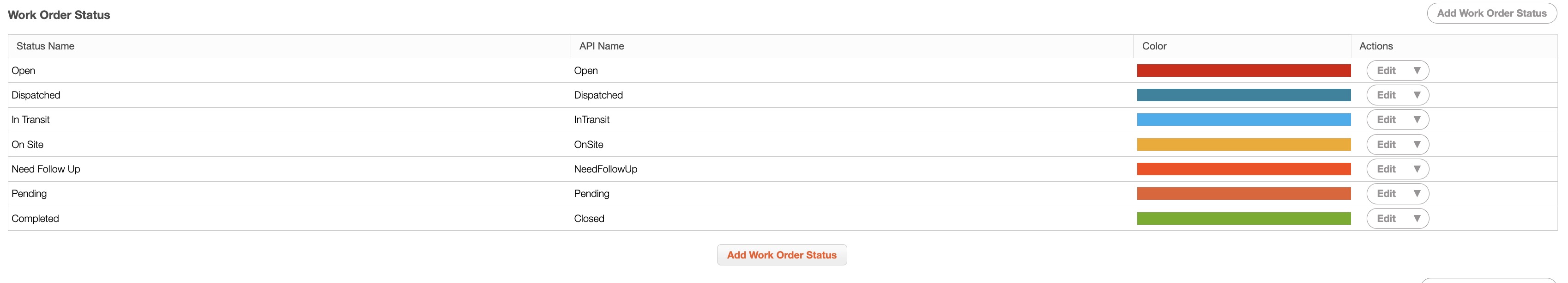 | "API Name" | The API name of the work order status. (The name does not change after it is created). |