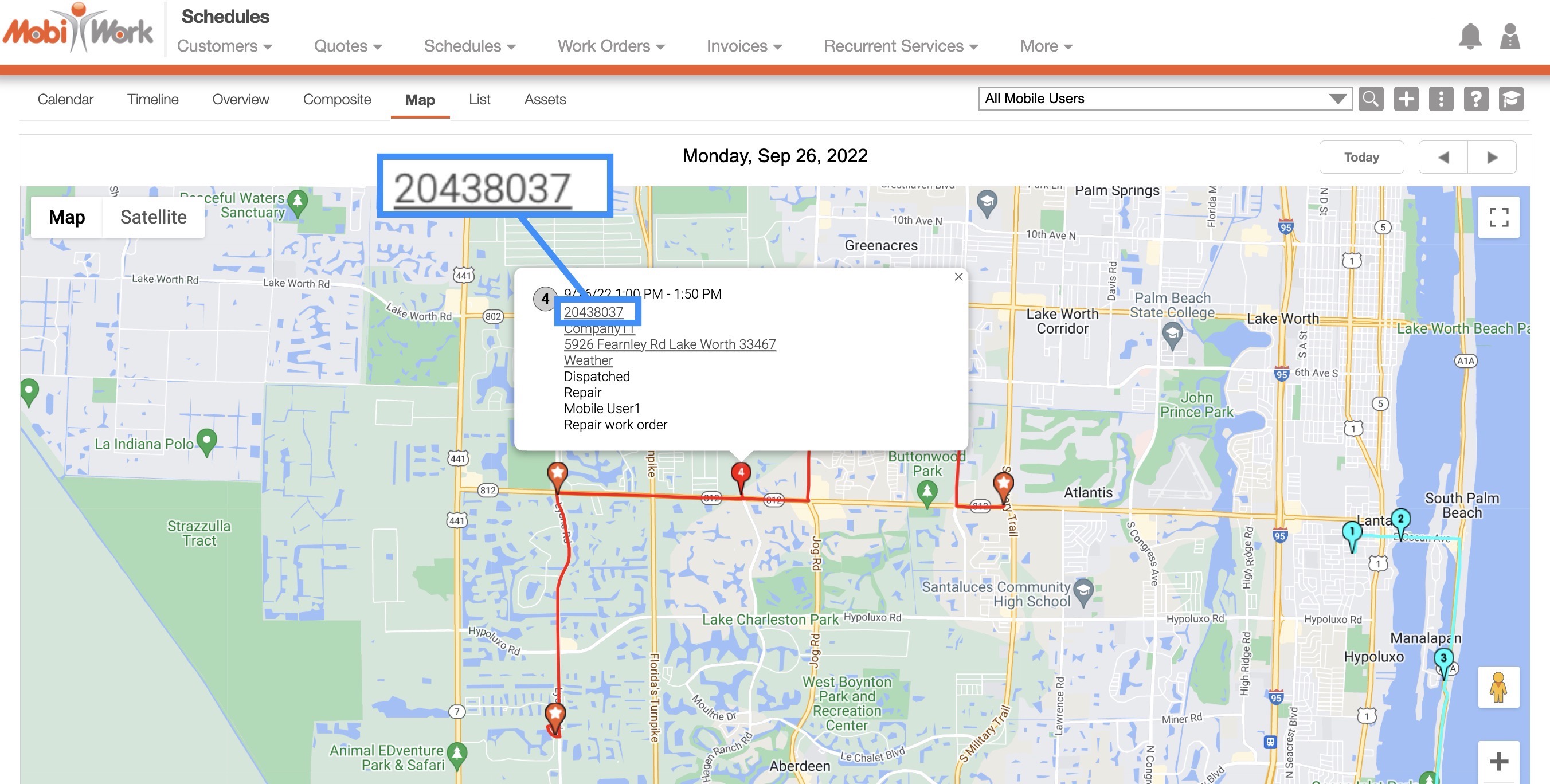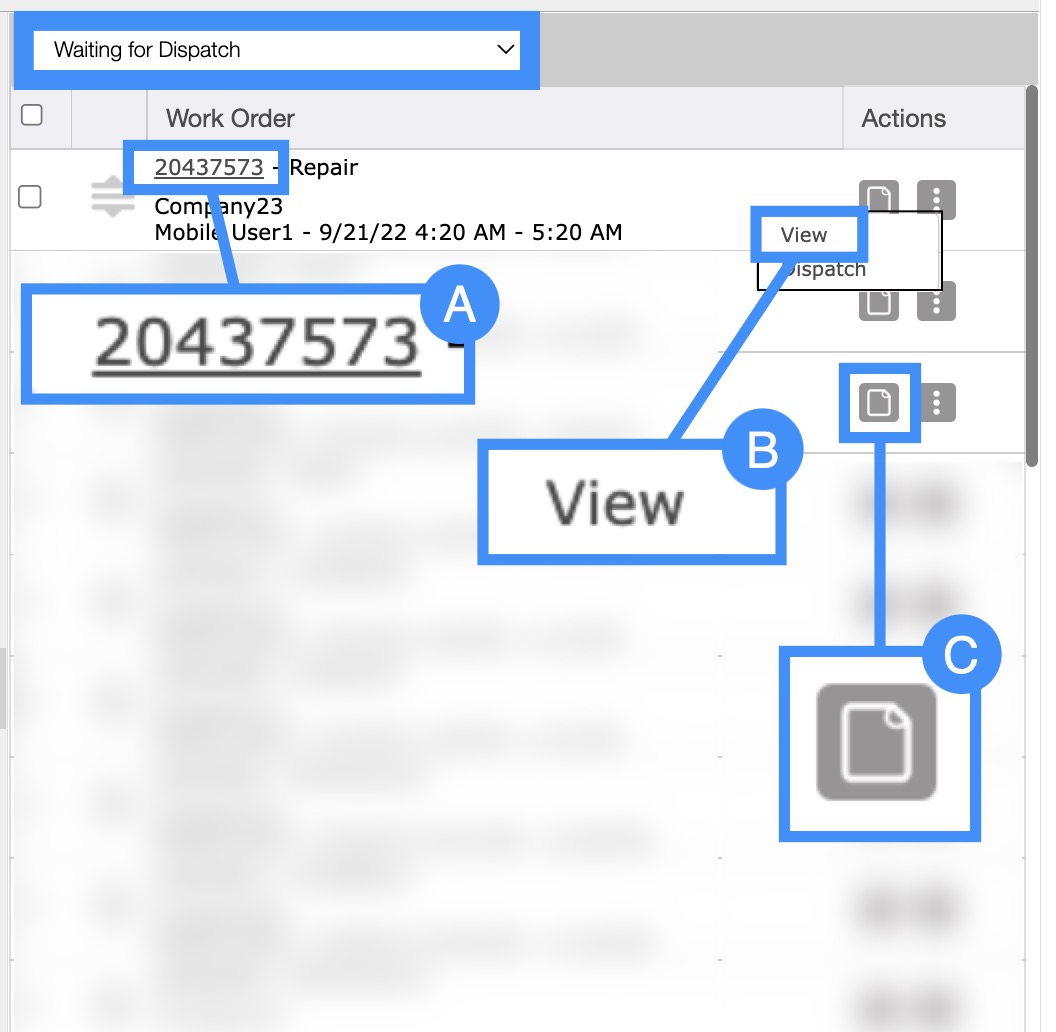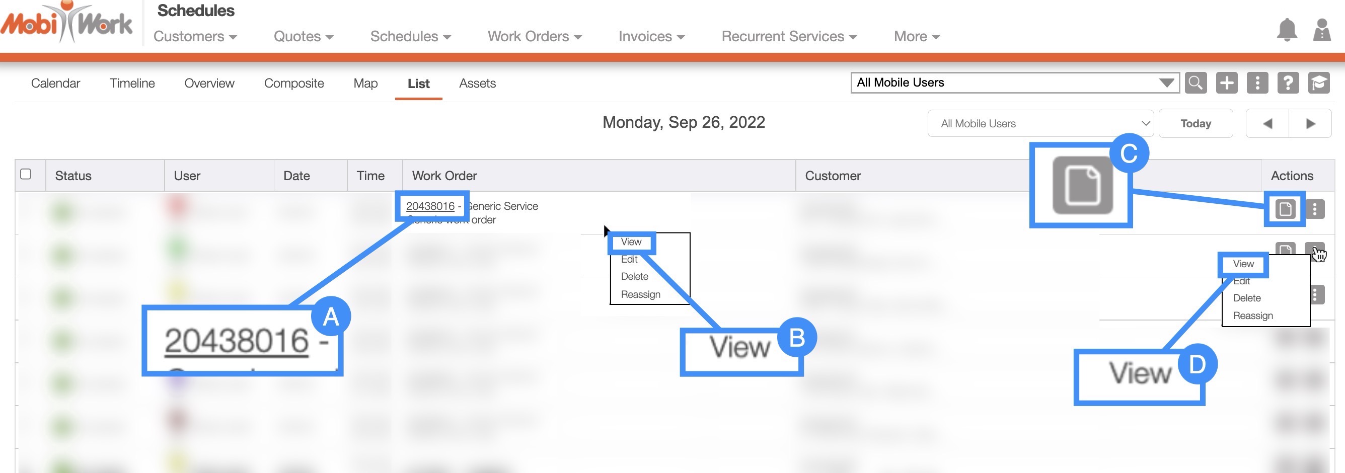 There are several different ways you can access the View Work Order pop-up window in MobiWork.